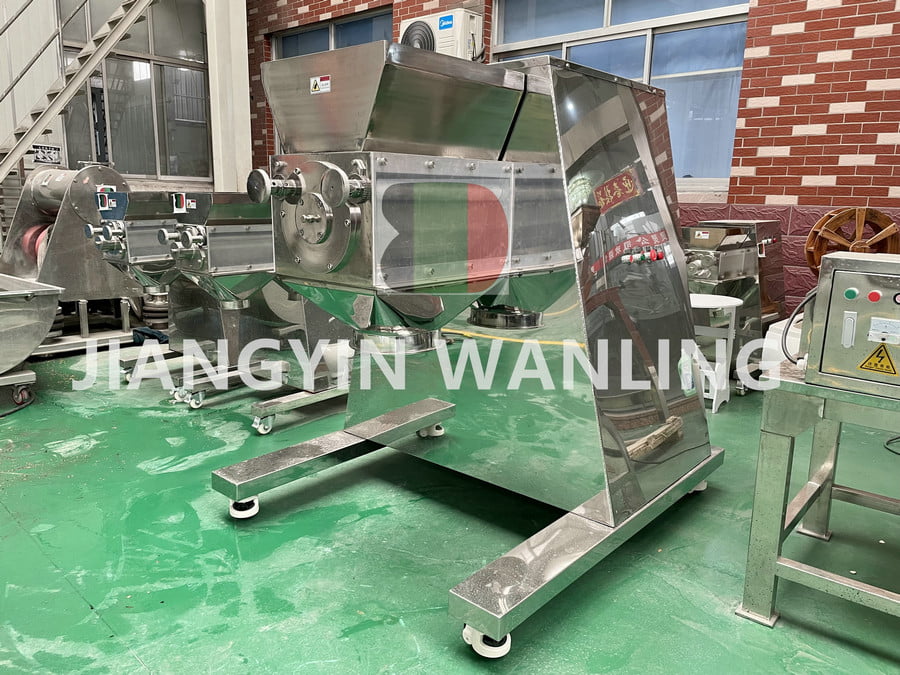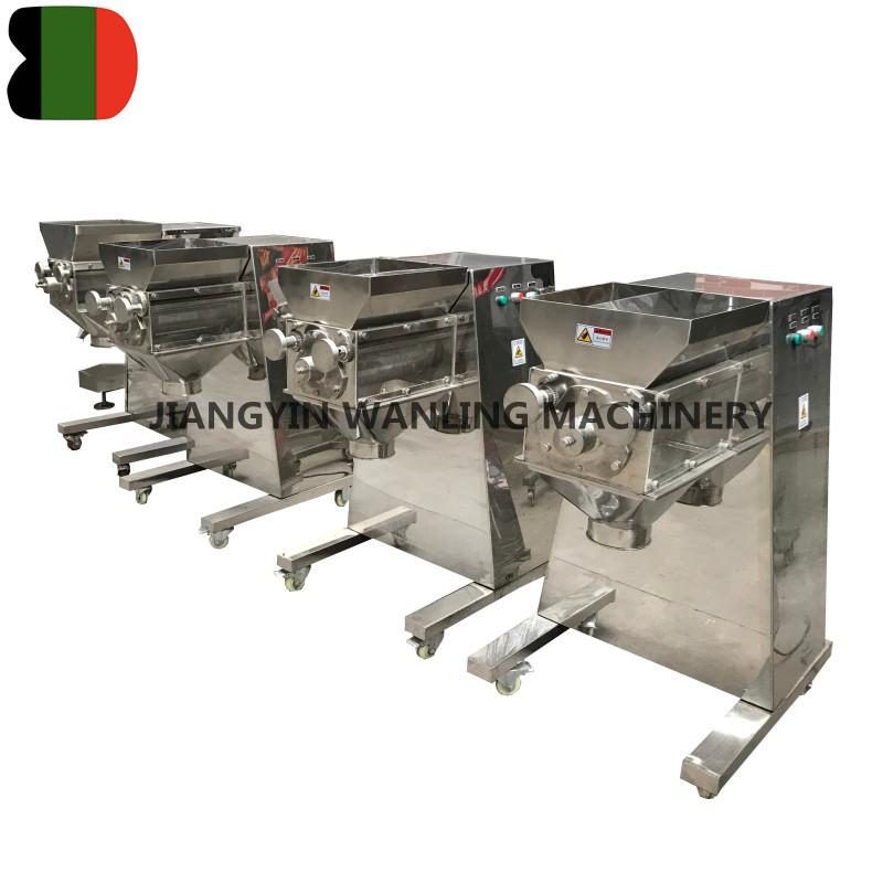 Dubbele cilinderzwaai granulator kan nat poedermateriaal in deeltjes maken. Het kan ook worden gebruikt om de geblokkeerde droge grondstof snel te verpletteren. De productiecapaciteit varieert met het materiaaltype, het vocht, de viscositeit en de zeefgrootte. Het kan verschillende specificaties van deeltjes produceren.